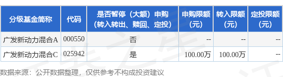 本站消息,11月12日广发基金管理有限公司发布《关于广发新动力混合型证券投资基金C类基金份额调整大额申购(含转换转入、定期定额和不定额投资)业务限额的公告》。公告中提示在线股票配资网站,为满足投资者的投资需求,自2025年11月12日起广发新动力混合型证券投资基金C类基金份额调整大额申购(含转换转入、定期定额和不定额投资)业务限额,下属分级基金调整明细如下: