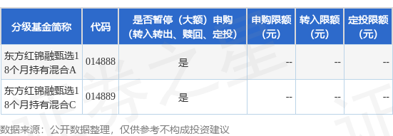 本站消息,11月12日上海东方证券资产管理有限公司发布《东方红锦融甄选18个月持有期混合型证券投资基金暂停申购、转换转入、定期定额投资业务的公告》。公告中提示,为保护基金持有人利益炒股配资入门知识网,自2025年11月13日起东方红锦融甄选18个月持有期混合型证券投资基金暂停申购、转换转入、定期定额投资业务,下属分级基金调整明细如下: