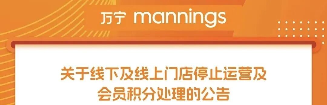 万宁中国公告显示,其线下门店最后营业日为2026年1月15日,之后将正式停止运营;此外,其线上万宁官方商城(小程序)将于2025年12月28日24时停止运营,而天猫旗舰店、京东旗舰店、天猫保健品专营店则将在12月26日停运。